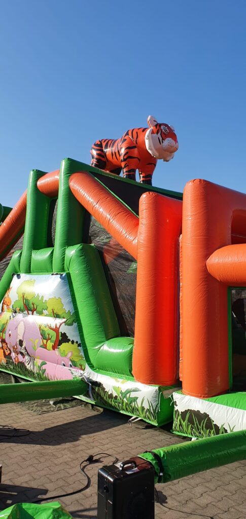 Voel je als een tijger in de jungle op onze stoere stormbaantijger! Met zijn veelzijdige look en alle uitdagende obstakels is deze hindernis stormbaan een echt speel-power-plezier. Perfect voor avontuurlijke feesten en evenementen. Ga als een tijger het avontuur aan in de onverwoestbare jungle!