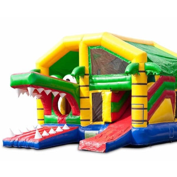 Beleef urenlang speelplezier op ons populaire springkussens voor kinderen uit het assortiment: Het Multiplay Krokodil Springkussen. Deze opblaasbare is zeer uitgebreid met pilaren op het springvlak, de bek van de krokodil en de glijbaan maakt het springkussen met krokodil thema echt af!